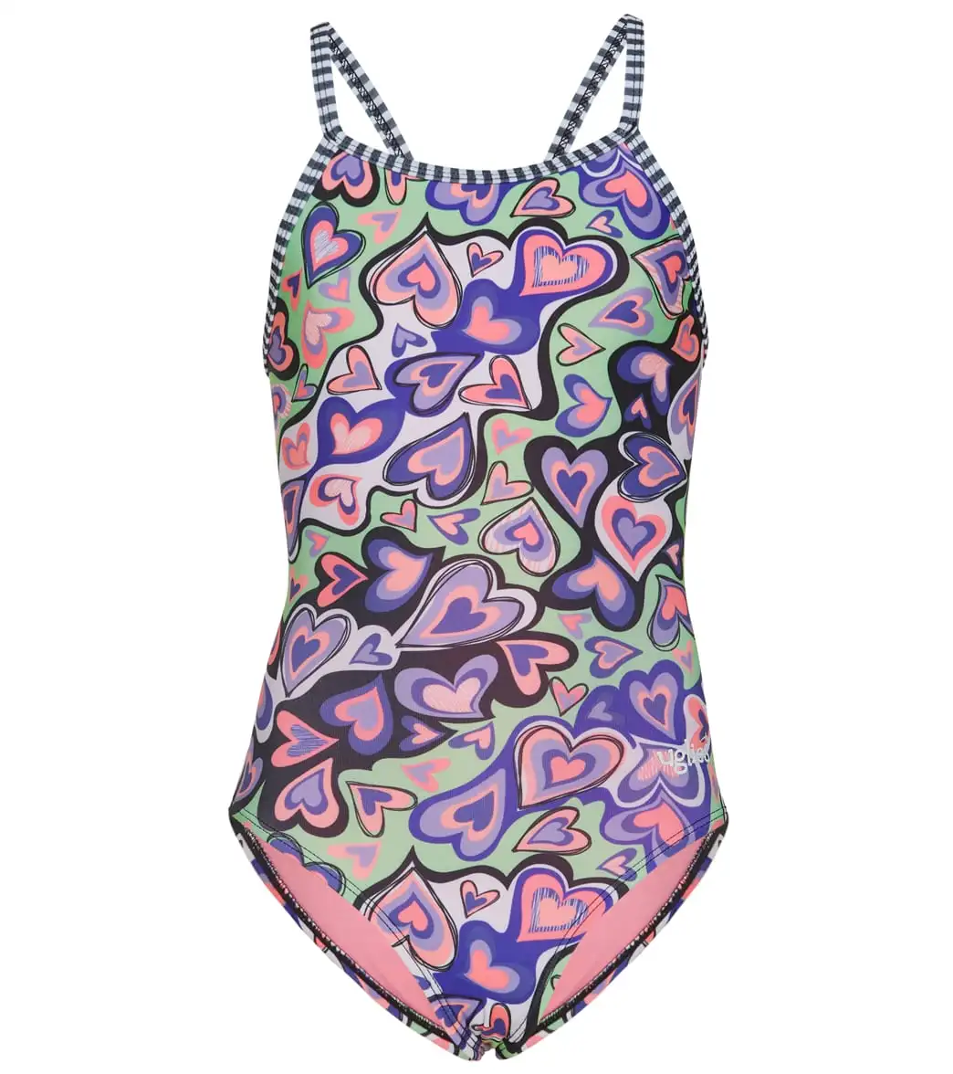 Splash into summer colors in the Dolfin Girls’ Printed One Piece Swimsuit (Big Kid), featuring classic Dolfin Uglies striped binding, and chlorine-resistant fabric that’ll last you all season.