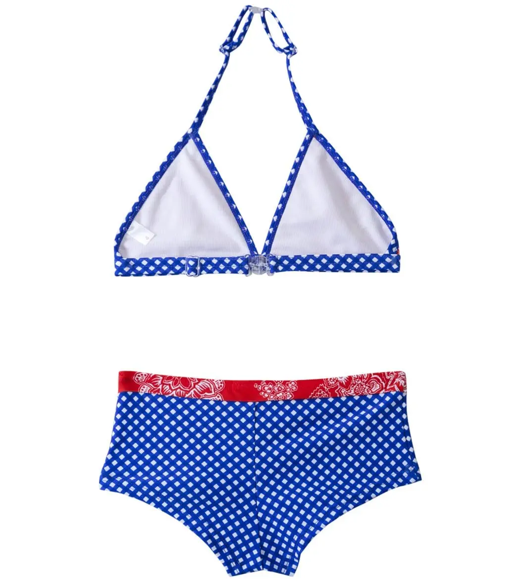 Show off her sporty style with the Platypus Australia Girls Fitted Rashguard/Two Piece Boyleg Set. Perfect for active little ones, this adorable swim set delivers optimal sun protection and a fabulous fit. The modest swim bottoms and adjustable halter straps deliver a secure fit.