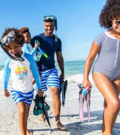 Looks cute and performs well in the water, the Snapper Rock Girls’ Nautical Stripe Short Sleeve One Piece Surf Suit is your kid’s favorite!