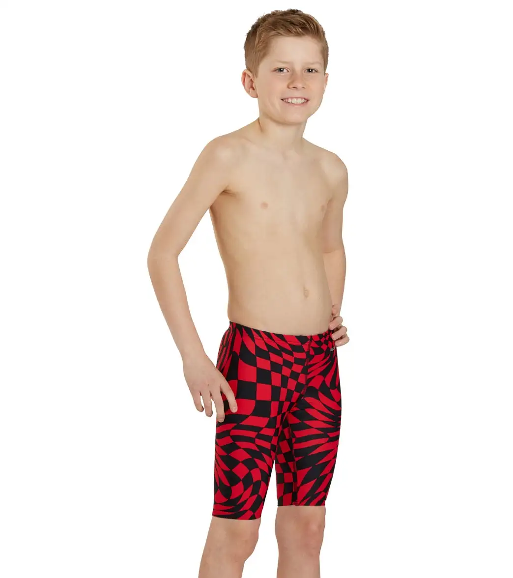 Dive into practice with a new style in the Sporti Checkmate Jammer Swimsuit Youth (22 – 28), featuring a vibrant print and a Lycra Xtra Life construction for superior performance and a lasting fit.