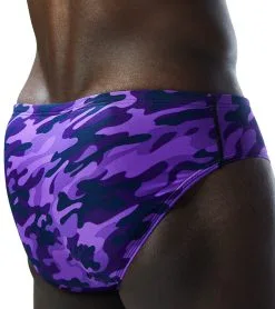 The TYR Men’s Camo Racer Brief Swimsuit is ideal for athletes who want a combination of minimal coverage and comfortable support during every swim.